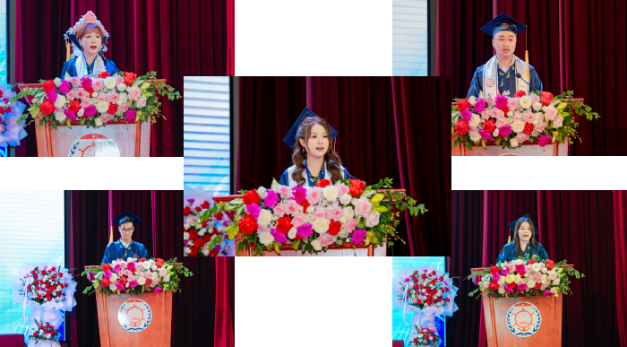 Đại diện cho các tân kỹ sư, tân cử nhân phát biểu và tặng hoa tri ân các Thầy, Cô