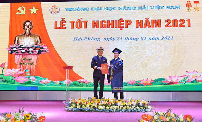 08h30 ngày 21/01/2021, Trường Đại học Hàng hải Việt Nam đã long trọng tổ chức Lễ Tốt nghiệp đợt I năm 2021 cho 775 tân cử nhân, kỹ sư. Đây là sự kiện đánh dấu thời khắc quan trọng trong cuộc đời các em sinh viên và cũng là dấu mốc ghi lại thành quả đào tạo của Nhà trường trong quá trình xây dựng và phát triển.