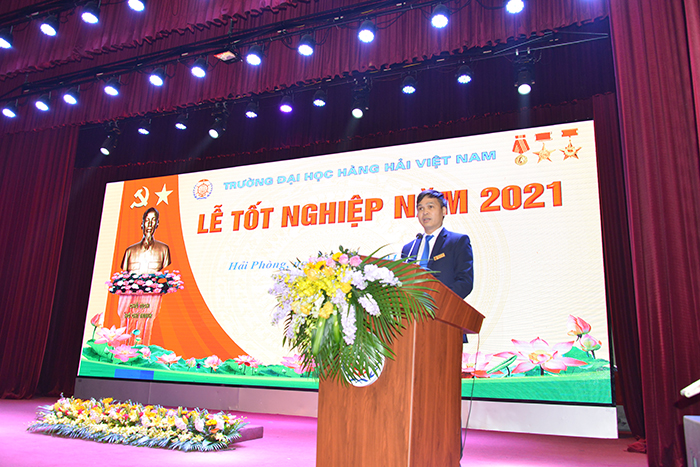 Tại buổi Lễ, PGS.TS Phạm Xuân Dương - Phó Bí thư Đảng ủy, Hiệu trưởng Nhà trường chúc mừng và ghi nhận những nỗ lực của các em sinh viên trong quá trình học tập, rèn luyện tại Trường Đại học Hàng hải Việt Nam - Mái trường có bề dầy lịch sử 65 năm xây dựng, trưởng thành và phát triển. Năm 2020 là một năm đánh dấu sự phát triển mạnh mẽ của Trường Đại học Hàng hải Việt Nam trong bối cảnh cả đất nước và thế giới phải ứng phó với dịch Covid-19. Nhà trường đã đứng thứ 21 về tổng thể của các chỉ số nghiên cứu; đứng thứ 4 về chỉ số nghiên cứu nội lực; đứng thứ 18 về chỉ số trích dẫn trung bình; đứng thứ 27 về chỉ số bài báo trung bình trên giảng viên và đứng thứ 26 về chỉ số quy mô công bố. Bên cạnh đó, Nhà trường được công nhận là một trong 100 trường đại học đáng học nhất tại Việt Nam.