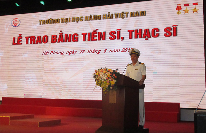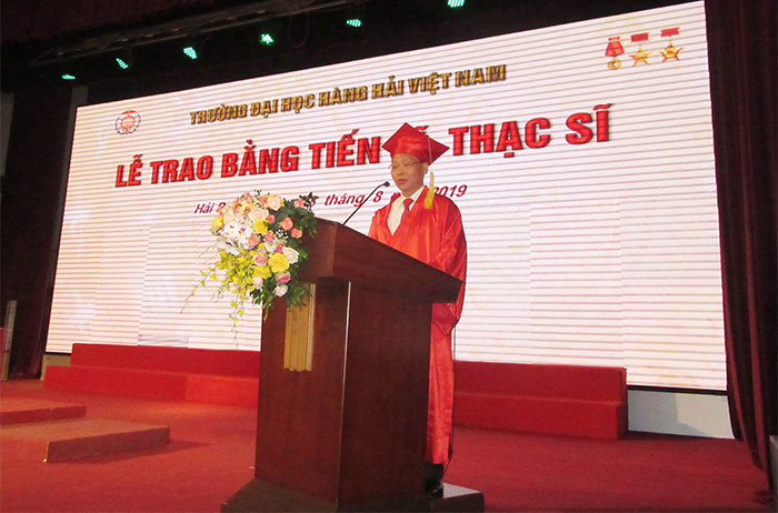 Đại diện cho các tân tiến sĩ, thạc sĩ đã phát biểu, bày tỏ niềm vui, niềm tự hào khi được học tập và nghiên cứu dưới Mái trường Đại dương: “Để đạt được thành quả này, ngoài sự nỗ lực của bản thân đã vượt qua mọi khó khăn, chúng em xin được bày tỏ lòng biết ơn tới lãnh đạo Nhà trường, các giáo sư, phó giáo sư, tiến sĩ, các nhà khoa học, các thầy giáo, cô giáo cùng toàn thể cán bộ viên chức của Trường đã quan tâm, tạo mọi điều kiện thuận lợi, tận tình giảng dạy, hướng dẫn để nghiên cứu sinh và học viên cao học hoàn thành chương trình đào tạo. Bên cạnh đó, xin tri ân những chia sẻ thầm lặng của những người thân trong gia đình, của cơ quan đơn vị đã tạo điều kiện để các tân tiến sĩ, tân thạc sĩ hoàn thành nhiệm vụ của mình và sẽ tiếp tục phát huy tinh thần cầu tiến, vận dụng sáng tạo những kiến thức, những phương pháp luận khoa học đã được tích lũy để tiếp tục công hiến cho cơ quan, cho xã hội, xứng đáng là những nghiên cứu sinh, học viên cao học trưởng thành từ Trường Đại học Hàng hải Việt Nam thân yêu".
