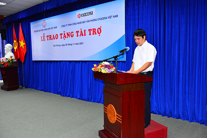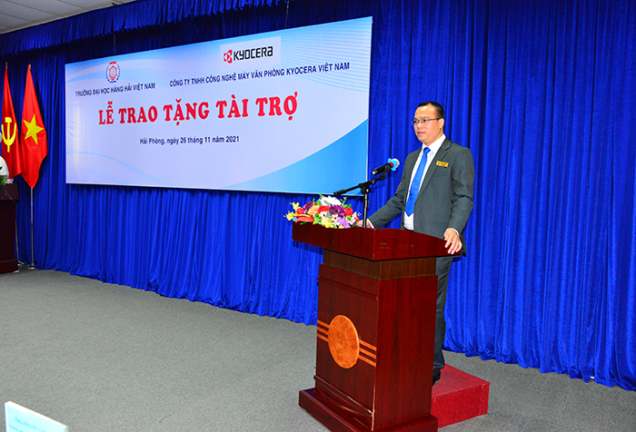 PGS.TS Nguyễn Minh Đức – Phó Hiệu trưởng Nhà trường phát biểu cảm ơn phía công ty Kyocera Việt Nam tại Hải Phòng
