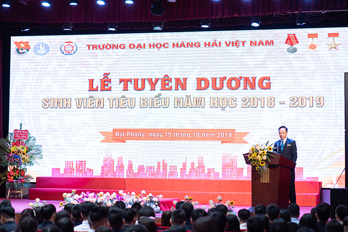 Thực hiện chương trình công tác năm học 2019-2020 của Trường Đại học Hàng hải Việt Nam; để kịp thời động viên khuyến khích sinh viên tiêu biểu năm học 2018 – 2019, 19h30 ngày 15/10/2019, Trường Đại học Hàng hải Việt Nam đã tổ chức: “Lễ tuyên dương sinh viên tiêu biểu năm học 2018-2019” nhằm biểu dương, khen thưởng 162 gương mặt sinh viên tiêu biểu nhất, đạt các thành tích xuất sắc trong các lĩnh vực học tập, nghiên cứu khoa học, thi Olympic, đỗ thủ khoa đầu vào khóa 60, văn hóa văn nghệ, thể dục thể thao, bí thư - lớp trưởng, sinh viên tình nguyện tiêu biểu, các câu lạc bộ, từ đó nhân rộng các điển hình tiên tiến, góp phần nâng cao chất lượng đào tạo, nghiên cứu khoa học và các mặt hoạt động công tác của Nhà trường.