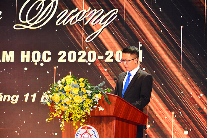 Đồng chí Nguyễn Lê Mạnh Cường - Phó Bí thư Đoàn trường công bố Quyết định khen thưởng đối với 198 sinh viên tiêu biểu trong đó về lĩnh vực học tập có 101 sinh viên; lĩnh vực Olympic và nghiên cứu khoa học có 66 sinh viên; Công tác Đoàn - Hội và phong trào sinh viên, văn hóa, văn nghệ, thể dục thể thao có 31 sinh viên. Đây là những gương mặt ưu tú có thành tích xuất sắc trong học tập, Olympic, nghiên cứu khoa học, văn hóa văn nghệ, thể dục thể thao, các sinh viên là lớp trưởng, bí thư, tham gia các câu lạc bộ.
