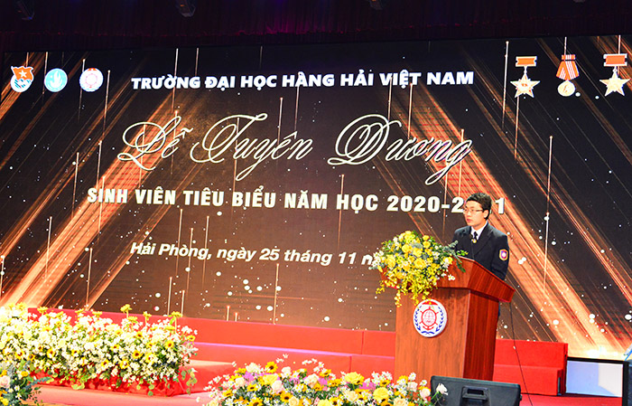 Phát biểu tại buổi Lễ, PGS.TS. Phạm Xuân Dương - Phó Bí thư Đảng ủy, Hiệu trưởng Nhà trường biểu dương những thành tích xuất sắc của 198 sinh viên. Trải qua hơn 65 năm xây dựng, hội nhập và phát triển, Trường Đại học Hàng hải Việt Nam đã đạt được những thành tích rất đáng tự hào góp phần phục vụ cho sự nghiệp phát triển kinh tế - xã hội, đảm bảo an ninh - quốc phòng của thành phố Hải Phòng, ngành Giao thông vận tải và đất nước. Vinh quang thuộc về các thế hệ cán bộ, giảng viên, sinh viên nối tiếp đã và đang cần mẫn, tận tâm ngày đêm đóng góp quan trọng và quyết định đến việc ươm trồng lớp lớp các nhà quản lý và chuyên gia cho đất nước. Thầy cũng mong muốn, các em sinh viên tiếp tục phát huy và cố gắng hơn nữa, làm nhân tố để lan tỏa và thúc đẩy phong trào học tập, rèn luyện của sinh viên trong toàn Trường. Thành tích đạt được như ngày hôm nay là cả một quá trình dài phấn đấu và nỗ lực hết mình của các em.