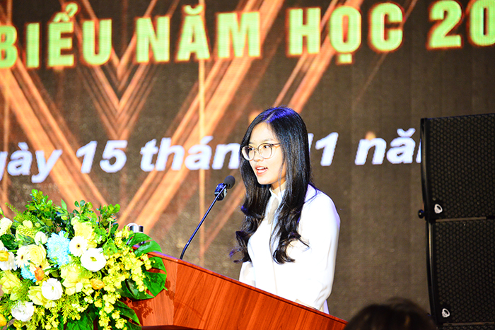 Thay mặt 215 sinh viên tiêu biểu được khen thưởng, Sinh viên Ngô Thị Diệu Linh - lớp LQC60ĐH, Tân Vô địch quốc gia năm 2022 nội dung thi Microsoft Excel 2016 chia sẻ cảm xúc khi được học tập tại Trường Đại học Hàng hải Việt Nam. “Năm học vừa qua để lại rất nhiều kỷ niệm cho bản thân em nói riêng, cũng như mỗi bạn SV đang ngồi dưới Hội trường và toàn thể các bạn SV Trường Đại học Hàng Hải Việt Nam nói chung. Sau gần 4 năm học tập và rèn luyện tại đây, em càng ý thức sâu sắc và tin tưởng rằng những năm tháng dưới Mái Trường Đại học Hàng hải Việt Nam sẽ là nơi khởi đầu cho những ước mơ, nơi lưu lại những kỷ niệm đẹp nhất trong cuộc đời của mỗi sinh viên. Đó là những cố gắng và tinh thần không ngừng học hỏi, nghiên cứu chuyên môn của mỗi sinh viên; sự truyền dạy của các thầy, cô giáo bằng cả trí tuệ và tâm huyết. Những thành công có được hôm nay mới chỉ khởi đầu trong chặng đường còn nhiều gian nan phía trước. Bản thân em và các bạn SV được khen thưởng ngày hôm nay xin hứa sẽ không ngừng phấn đấu nhiều hơn nữa để có thể đạt thêm nhiều thành tích trong tương lai. Đó cũng chính là minh chứng rõ ràng cho chất lượng và danh tiếng của Trường Đại học Hàng Hải Việt Nam - Trường Đại học trọng điểm quốc gia, mang tầm vóc quốc tế.