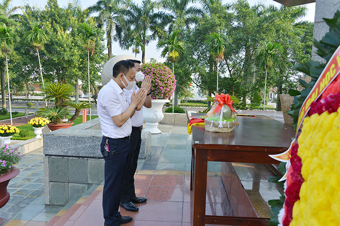 Tham dự lễ viếng có các đồng chí: PGS.TS Nguyễn Khắc Khiêm – Bí thư Đảng ủy, Chủ tịch Hội đồng Trường; PGS. TS Phạm Xuân Dương – Phó Bí thư Đảng ủy, Hiệu trưởng Nhà trường cùng các đồng chí trong BGH, Công đoàn, Đoàn Thanh niên của Nhà trường và 04 thành viên Câu lạc bộ 27/7 đã đến đặt vòng hoa, làm lễ, dâng hương tại Đài tưởng niệm anh hùng, liệt sỹ Thành phố.