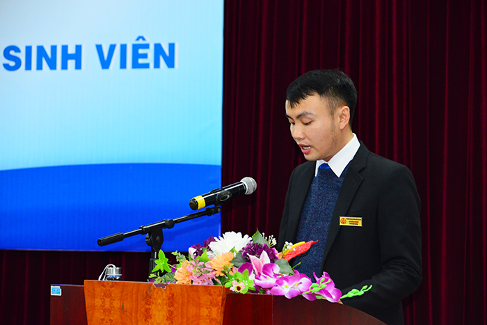 Đồng chí Lê Hoàng Dương – Chủ tịch HSV Trường phát biểu Chào mừng kỷ niệm 72 năm ngày truyền thống học sinh, sinh viên và Hội Sinh viên Việt Nam