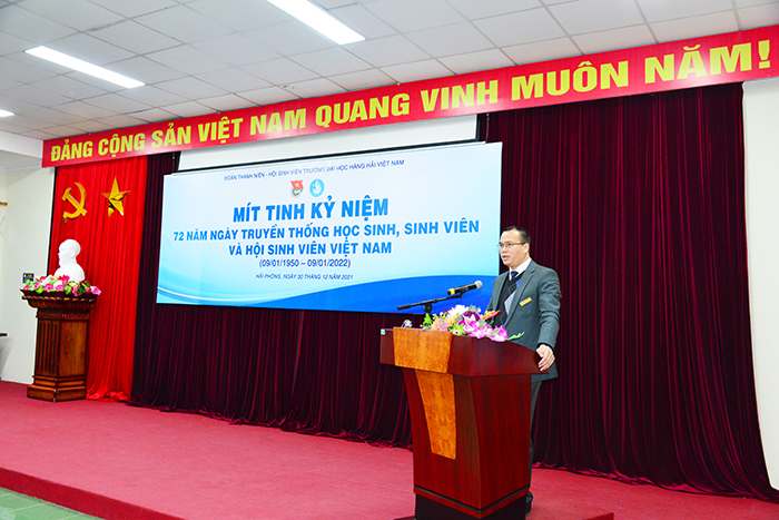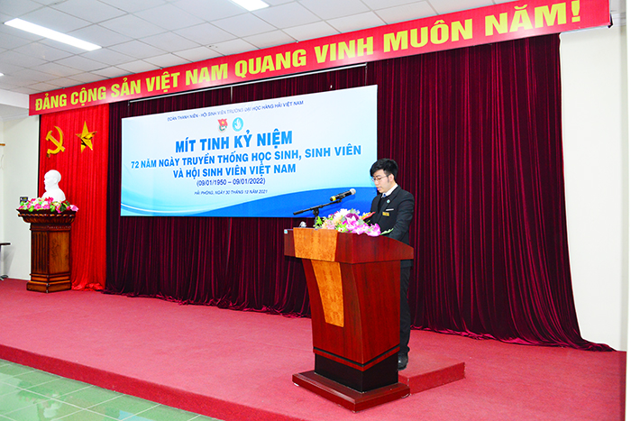 Nhằm chào mừng kỷ niệm 72 năm ngày truyền thống học sinh, sinh viên và Hội sinh viên Việt nam (09/01/1950 – 09/01/2022), Trường Đại học Hàng hải Việt Nam long trọng tổ chức Chương trình Mít tinh kỷ niệm 72 năm ngày truyền thống học sinh, sinh viên và Hội Sinh viên Việt Nam. Trước diễn biến phức tạp của đại dịch Covid-19, Trường Đại học Hàng hải Việt Nam đảm bảo tuân thủ chặt chẽ các yêu cầu về phòng chống dịch bệnh.