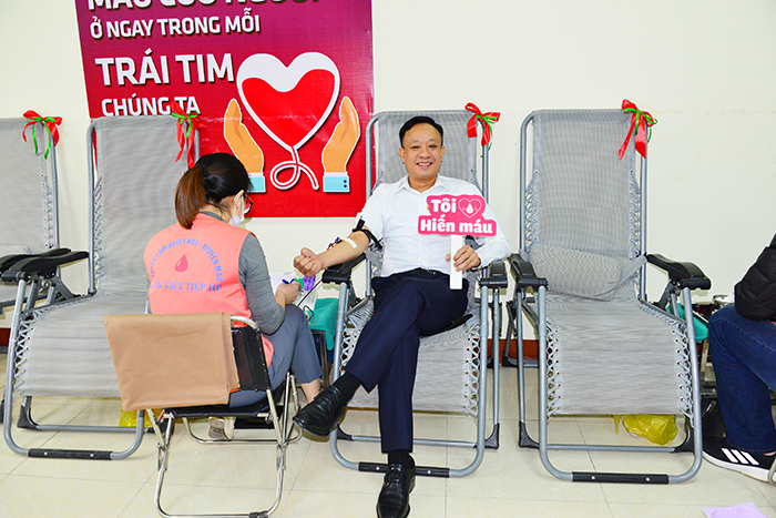PGS.TS Phạm Xuân Dương - Hiệu trưởng Nhà trường đánh dấu lần hiến máu thứ 54 của mình