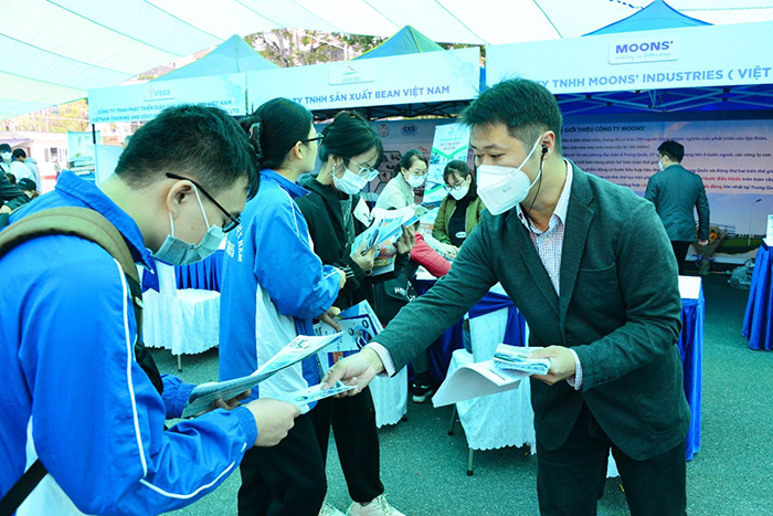Phát biểu tại buổi lễ, PGS.TS Nguyễn Minh Đức - Phó Hiệu trưởng Nhà trường cho biết, mỗi năm học Nhà trường có trên 2.000 sinh viên ra trường, đáp ứng nhu cầu tuyển dụng của các doanh nghiệp trong và ngoài nước. Trong quá trình đào tạo, Trường luôn coi trọng việc kết nối doanh nghiệp - nhà quản lý - đơn vị đào tạo, thông qua việc việc khảo sát nhu cầu tuyển dụng lao động của các doanh nghiệp, nắm bắt yêu cầu của doanh nghiệp về kiến thức, kỹ năng của người lao động, trên cơ sở đó thiết kế, xây dựng, sửa đổi chương trình đào tạo phù hợp; phối hợp với các doanh nghiệp tạo điều kiện cho sinh viên tham quan, thực tập để tiếp cận với thực tiễn nghề nghiệp; tạo môi trường để sinh viên khởi nghiệp; thực hiện công tác định hướng tư vấn giới thiệu việc làm cho sinh viên cả trước và sau khi tốt nghiệp. Việc tổ chức Ngày hội việc làm là hoạt động thường niên nhằm tạo điều kiện cho sinh viên năm cuối, sinh viên mới tốt nghiệp nhanh chóng tiếp cận các cơ hội việc làm phù hợp với ngành nghề đào tạo. Đây cũng là dịp thuận lợi để các doanh nghiệp quảng bá thương hiệu và là cơ hội để các doanh nghiệp tuyển chọn lao động trực tiếp; từ đó lựa chọn được lao động phù hợp với nhu cầu sử dụng.