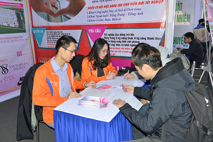 Ngày hội việc làm năm nay được tổ chức công phu và quy mô, có 19 gian hàng tuyển dụng với gần 1700 chỉ tiêu tuyển dụng, thu hút đông đảo các bạn sinh viên tham gia với mong muốn tìm được một công việc phù hợp. Nhiều công ty lớn cũng góp mặt trong ngày hội, mang tới những cơ hội nghề nghiệp với mức lương hấp dẫn như: Công ty TNHH LG ELECTRONICS Việt Nam; Công ty TNHH LG DISPLAY Việt Nam; Công ty TNHH Công nghệ máy văn phòng KYOCERA Việt Nam; Công ty TNHH HORN Việt Nam; Công ty TNHH sản xuất lốp xe Bridgestone Việt Nam; Công ty TNHH Rorze Robotech,…Có gần 1.000 bạn sinh viên tốt nghiệp và đang học theo tham gia ứng tuyển, phỏng vấn trực tiếp tại các gian hàng và qua Cổng thông tin việc làm của Nhà trường, hơn 700 bạn được các doanh nghiệp tuyển dụng làm việc toàn thời gian, bán thời gian và thực tập sinh.