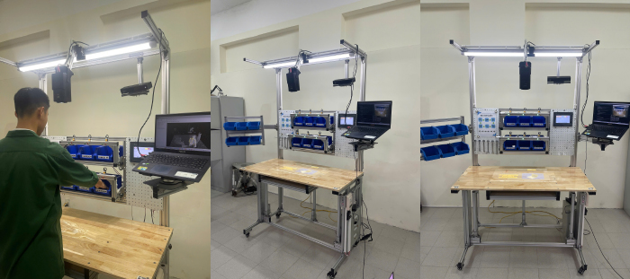 Trạm là một hệ thống tích hợp gồm khung cơ khí theo modul, camera giám sát thao tác, máy chiếu hướng dẫn và phần mềm phân tích dữ liệu. Dự án hướng tới mô hình trạm làm việc thông minh, tích hợp công nghệ hiện đại và yếu tố công thái học, nhằm tối ưu hóa hiệu suất lao động, nâng cao chất lượng sản phẩm và cải thiện điều kiện làm việc trong các môi trường sản xuất thủ công.