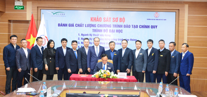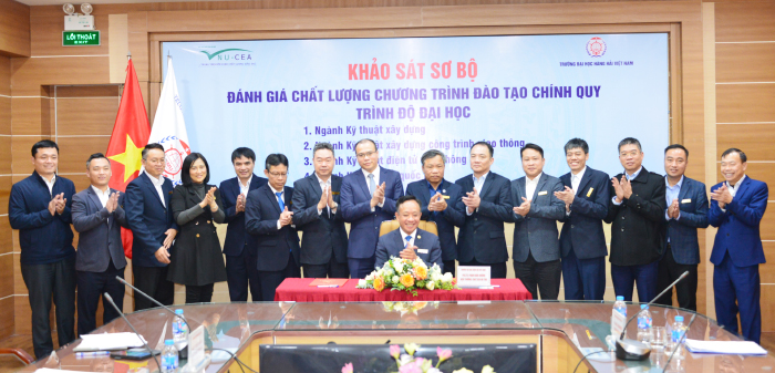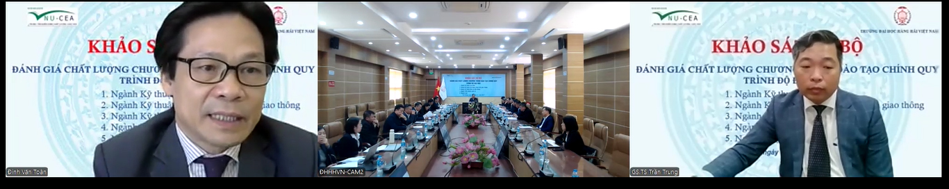 Về phía Trường Đại học Hàng hải Việt Nam có PGS.TS. Phạm Xuân Dương - Hiệu trưởng, Chủ tịch Hội đồng Tự đánh giá; PGS.TS. Nguyễn Minh Đức - Phó Hiệu trưởng, Phó Chủ tịch Hội đồng Tự đánh giá; Trưởng các Khoa: Khoa Công trình, Khoa Kinh tế, Khoa Hàng hải, Khoa Điện - Điện tử; Thủ trưởng các đơn vị có liên quan và các thầy, cô trong Hội đồng Tự đánh giá.