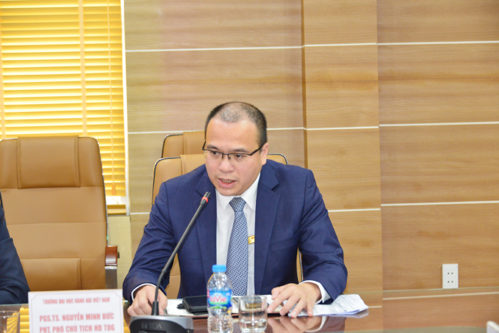 Thay mặt Trung tâm KĐCLGD - ĐHQGHN và Đoàn chuyên gia ĐGN, PGS.TS. Đinh Văn Toàn - Phó Giám đốc Trung tâm cùng GS.TS. Trần Trung - Trưởng đoàn chuyên gia ĐGN chúc mừng Nhà trường đã hoàn thành công tác tự đánh giá 05 chương trình đào tạo tiếp theo và ghi nhận những nỗ lực liên tục để cải tiến chất lượng giáo dục; đồng thời cam kết Đoàn chuyên gia ĐGN sẽ triển khai các hoạt động đánh giá một cách khách quan, công minh, đúng quy định và quy trình của Bộ Giáo dục và Đào tạo. Đoàn cũng bày tỏ mong muốn nhận được sự hợp tác, hỗ trợ của Trường Đại học Hàng hải Việt Nam trong thời gian Đoàn làm việc tại Trường.