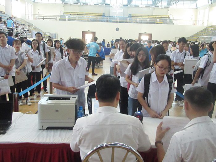 Để tạo điều kiện thuận lợi nhất cho tân sinh viên và gia đình, Nhà trường bố trí khu Nhà đa năng rộng hơn 2.000m2, với sức chứa 3.500 người đồng thời chuẩn bị chu đáo từ khâu lên kế hoạch, phổ biến quy trình nhập học trên các phương tiện thông tin, các bảng hướng dẫn, sơ đồ, công khai các khoản thu… từ trước đó nhiều ngày. Ban đón tiếp cùng sự hỗ trợ từ các khoa, viện, trung tâm, các sinh viên tình nguyện đã giúp tân sinh viên K60 nhanh chóng hoàn thành các thủ tục cần thiết và nhập học theo đúng quy trình.