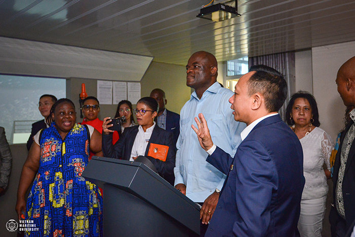 Sau buổi đón tiếp, Hiệu trưởng Phạm Xuân Dương, Thủ hiến Zamani Saul, Đại sứ Vuyiswa Tulelo cùng các cán bộ hai bên đã tiến hành đi tham quan cơ sở vật chất tiêu biểu của Nhà trường như: Phòng mô phỏng buồng lái,…