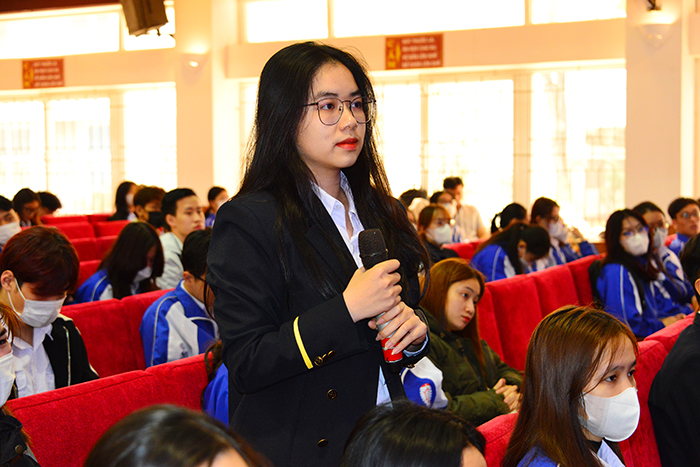 Trong phần Tọa đàm, PGS.TS Nguyễn Minh Đức, Phó Hiệu trưởng Nhà trường đã trực tiếp trả lời các câu hỏi của sinh viên liên quan đến nội dung của buổi tọa đàm. Qua đó định hướng cho sinh viên các kỹ năng khai thác, sử dụng Internet và mạng xã hội hiệu quả, thiết thực và lành mạnh, đưa ra phương án mà sinh viên nên ứng xử với các tình huống giả định cụ thể, từ đó trang bị cho sinh viên những quy tắc ứng xử trên mạng xã hội, tinh thần cảnh giác khi giao lưu, kết bạn trên môi trường mạng, cảnh giác với các thủ đoạn lừa đảo qua mạng và đặc biệt là luôn có ý thức bảo mật thông tin cá nhân.