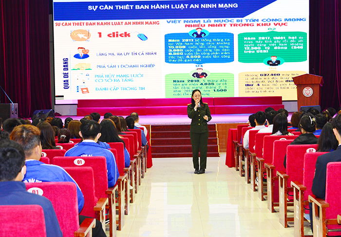 Thượng tá Lê Thị Thùy Dung - cán bộ Đội 3 PA03 công an thành phố Hải Phòng với chuyên đề: “Khai thác, sử dụng thông tin trên internet, mạng xã hội, những cơ hội và nguy cơ”.