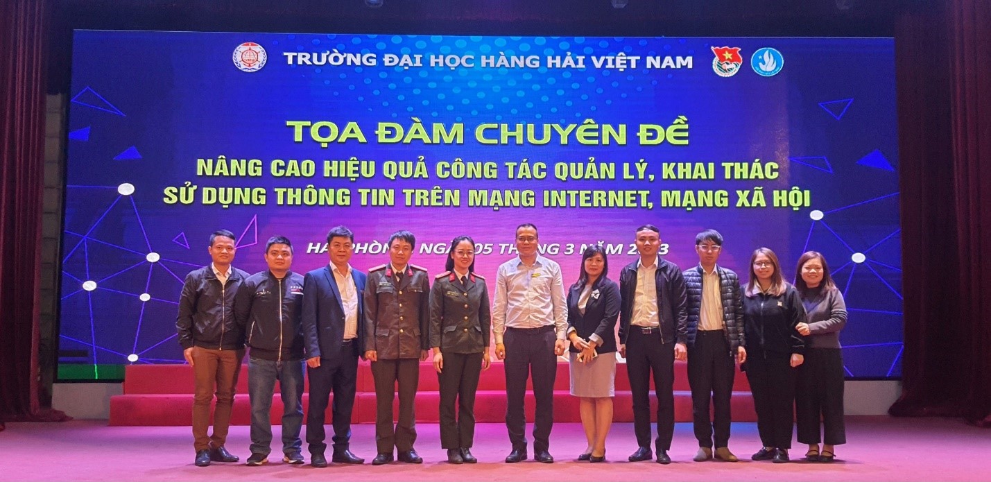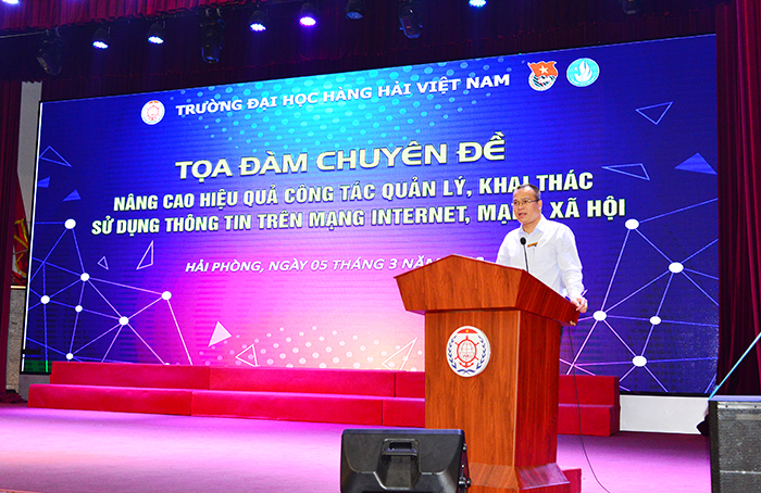 08h00 ngày 5/3//2023, Trường Đại học Hàng hải Việt Nam đã tổ chức buổi tọa đàm với chuyên đề: “Nâng cao hiệu quả công tác quản lý, khai thác, sử dụng thông tin trên internet, mạng xã hội” dưới sự chủ trì của PGS.TS Nguyễn Minh Đức - Phó Hiệu trưởng Nhà trường.