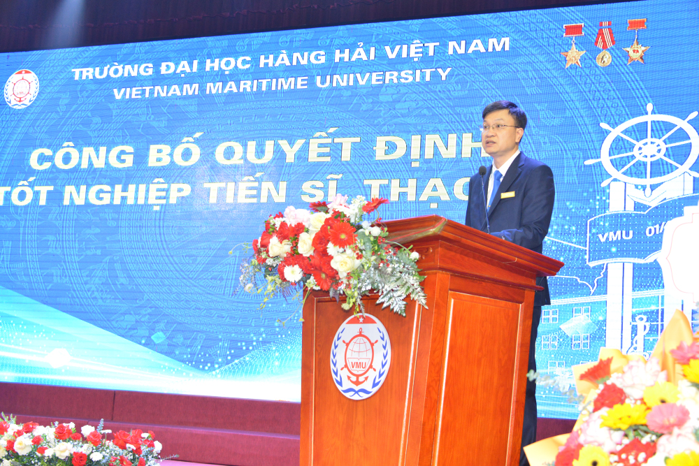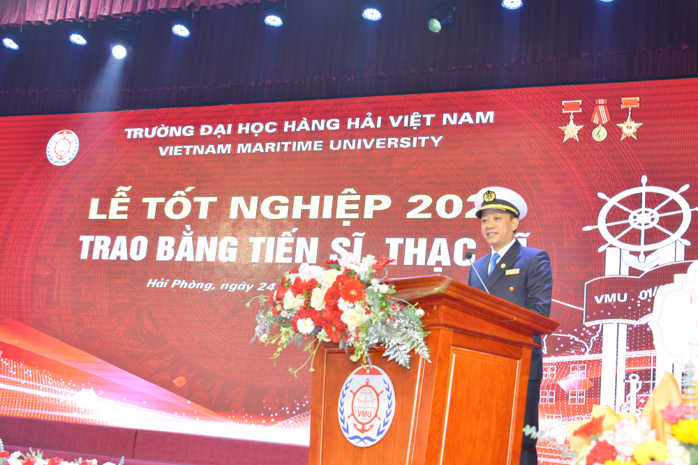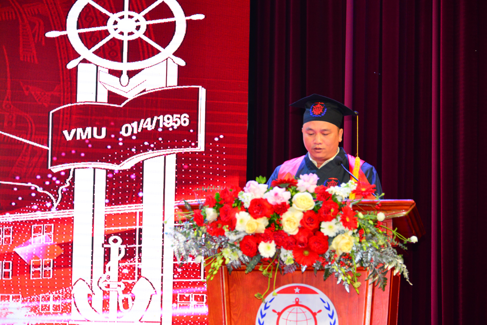 Đại diện cho các tân tiến sĩ, tân thạc sĩ phát biểu, bày tỏ niềm vui, niềm tự hào khi được học tập, nghiên cứu tại Trường Đại học Hàng hải Việt Nam; đồng thời cam kết sẽ vận dụng linh hoạt, sáng tạo những tri thức đã được tích lũy qua thực tiễn công tác, coi đó là cách để tri ân Nhà trường và các thầy, cô giáo.