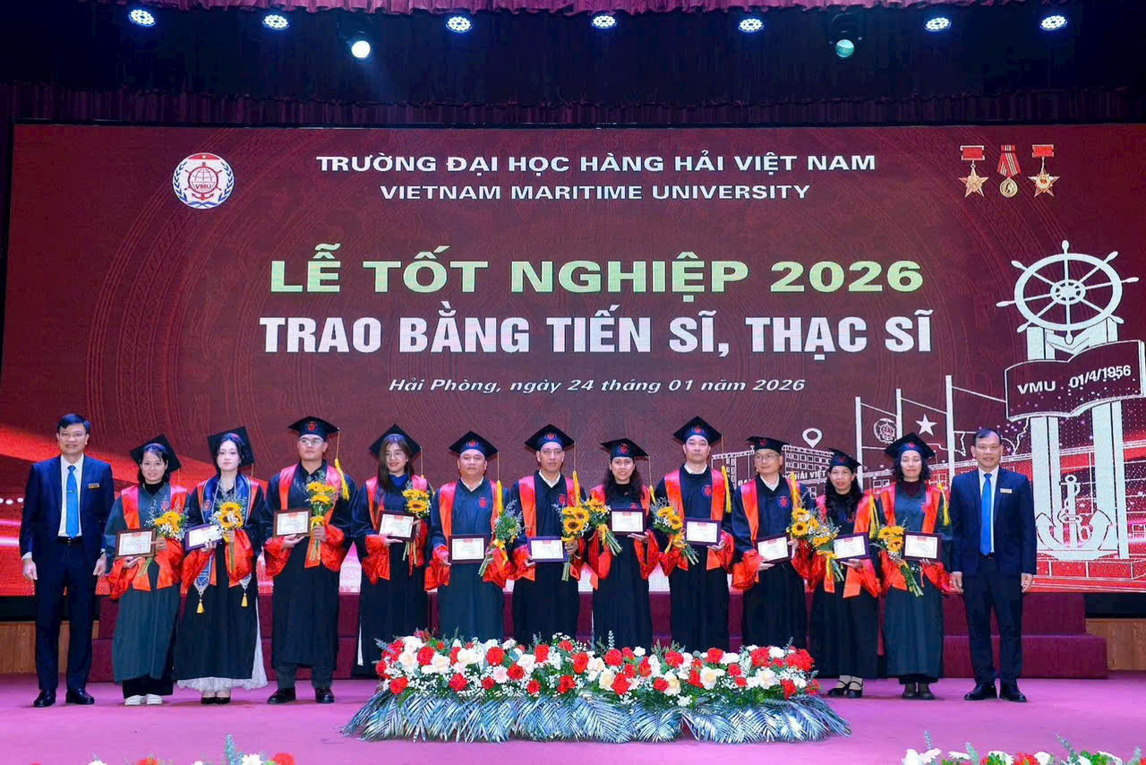 Chiều 24/01/2026, Trường Đại học Hàng hải Việt Nam đã long trọng tổ chức Lễ Tốt nghiệp và Trao bằng tiến sĩ, thạc sĩ năm 2026 cho gần 150 nghiên cứu sinh và học viên cao học hoàn thành chương trình đào tạo sau đại học.