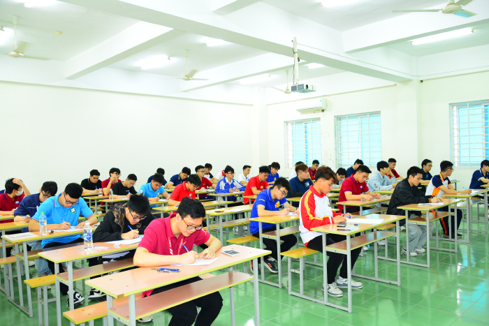 Sinh viên Đoàn Danh Hiếu - Trường Đại học Hàng hải Việt Nam, thí sinh dự thi môn Nguyên lý máy thực hiện tuyên thệ
