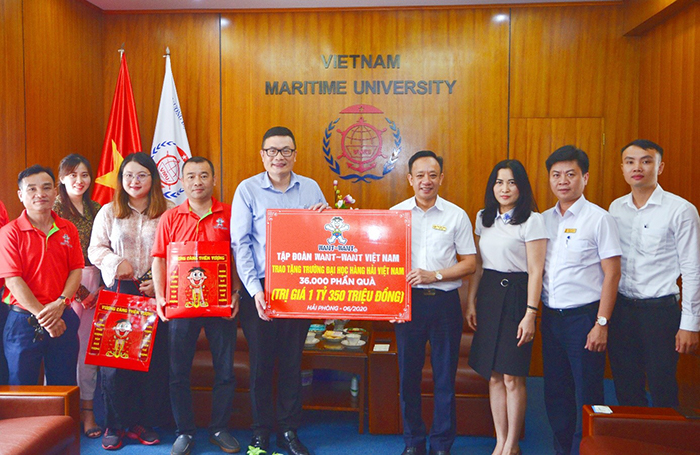 Sáng 16/6/2020, Ngài Chen Han Hua - Tổng Giám đốc Công ty TNHH Thương mại Want Want Việt Nam đến thăm và trao tặng 36.000 gói bánh gạo với tổng trị giá 1,35 tỷ đồng cho cán bộ, giảng viên và sinh viên Trường Đại học Hàng hải Việt Nam. Tiếp đoàn có PGS.TS Phạm Xuân Dương – Hiệu trưởng Nhà trường cùng lãnh đạo một số Phòng, Ban chức năng.