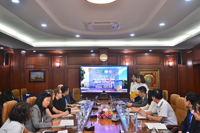 Về phía Trường Đại học Hàng hải Việt Nam, đón tiếp Đoàn có PGS. TS. Nguyễn Thanh Sơn - Phó Hiệu trưởng, lãnh đạo Phòng Quan hệ Quốc tế, Khoa Hàng hải cùng các cán bộ giảng viên Nhà trường.
