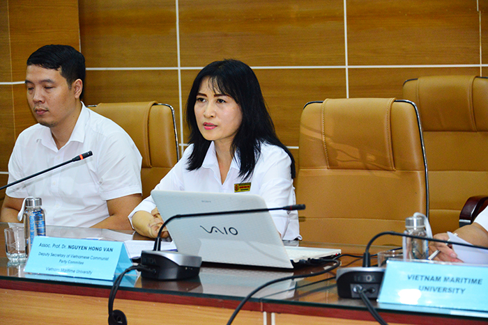 Phát biểu tại buổi tiếp đón, PGS. TS. Nguyễn Hồng Vân đã gửi lời cảm ơn sâu sắc đến đoàn Tầm nhìn Thế giới về việc ủng hộ, đồng hành cùng Nhà trường trong những công tác liên quan đến đào tạo, nghiên cứu khoa học,… đặc biệt là tài trợ nhiều suất học bổng có giá trị cho sinh viên có hoàn cảnh khó khăn của Trường Đại học Hàng hải Việt Nam để khuyến khích sinh viên tích cực học tập và tìm kiếm việc làm. Đồng thời, bà cũng cảm ơn Tổ chức đã tin tưởng hợp tác đầu tư phòng thí nghiệm để thực hành thí nghiệm Điện - Điện tử, góp phần nâng cao điều kiện giảng dạy và học tập cho sinh viên Nhà trường.