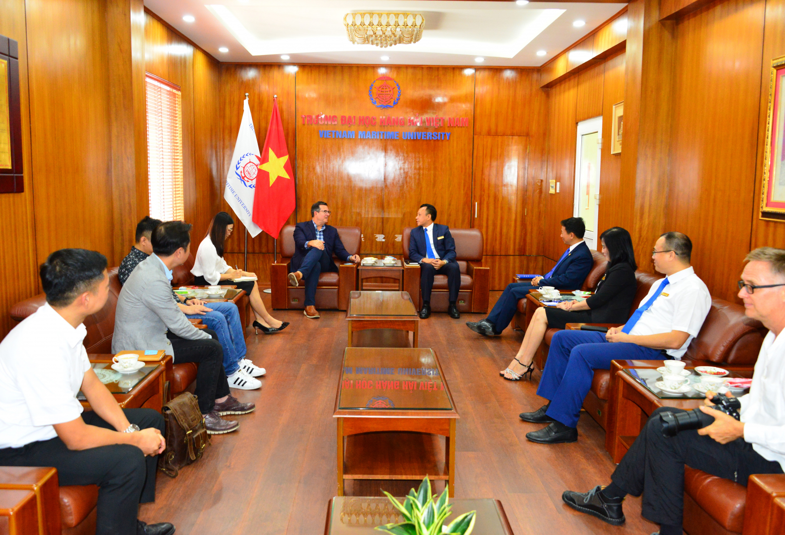 Tại buổi tiếp, PGS.TS. Phạm Xuân Dương - Hiệu trưởng đã giới thiệu về năng lực đào tạo và huấn luyện của Trường Đại học Hàng hải Việt Nam, đặc biệt là kinh nghiệm hợp tác với các đơn vị trong và ngoài nước trong công tác huấn luyện sinh viên, thuyền viên dựa trên những trang thiết bị, máy móc đạt chuẩn quốc tế.