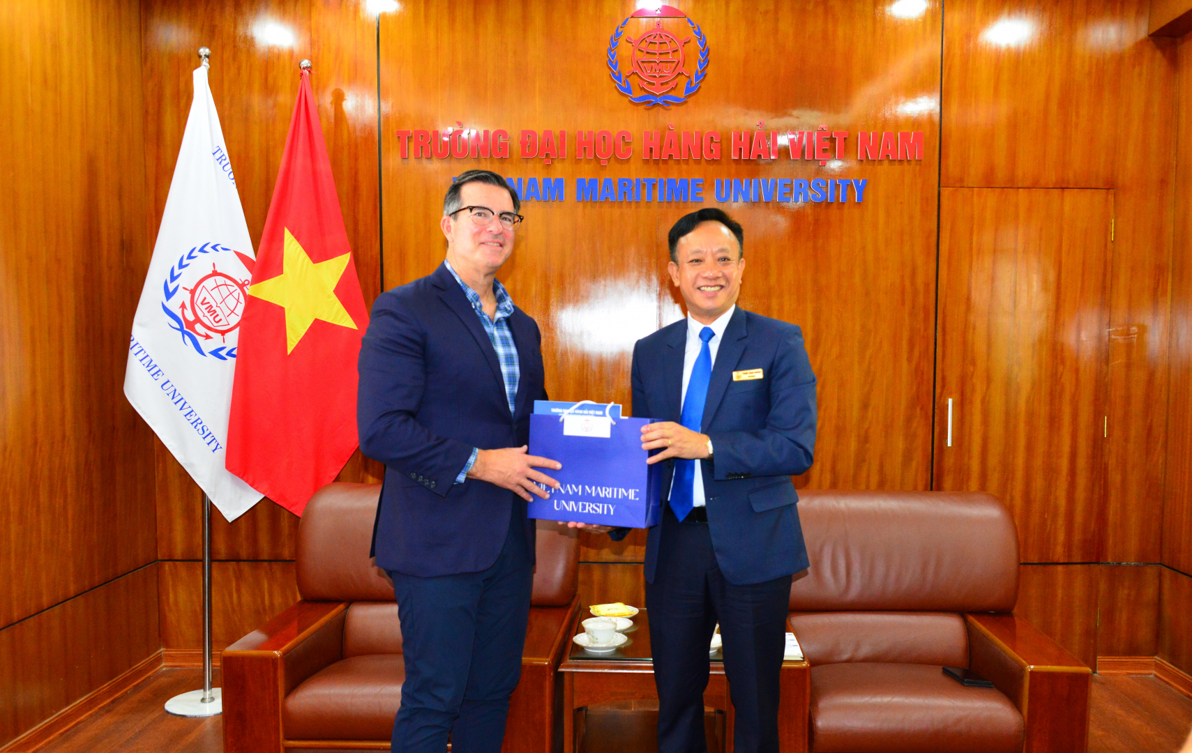 Sáng 24/10, PGS.TS Phạm Xuân Dương - Hiệu trưởng Trường Đại học Hàng hải Việt Nam đã đón tiếp và làm việc với Ngài Eric Roger Dawicki - Hiệu trưởng Trường Cao đẳng Hàng hải Bắc Mỹ. Cùng tiếp Đoàn có các đồng chí trong BGH Nhà trường, đại diện lãnh đạo các đơn vị có liên quan.