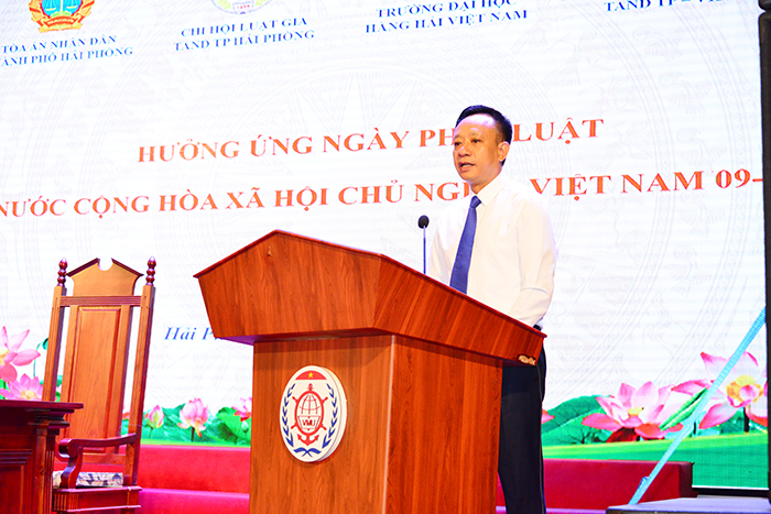 Chào mừng Ngày Pháp luật Việt Nam (09/11), ngày thành lập Mặt trận Tổ quốc Việt Nam (18/11), ngày Nhà giáo Việt Nam (20/11), sáng 11/11/2023, Chi hội Luật gia - Tòa án nhân dân thành phố Hải Phòng phối hợp cùng Trường Đại học Hàng hải Việt Nam tổ chức Phiên tòa giả định vụ án Kinh doanh thương mại về “Tranh chấp vận chuyển hàng hoá bằng đường biển và bồi thường thiệt hại về hàng hóa bị thiếu, giảm giá trị do vận chuyển”.