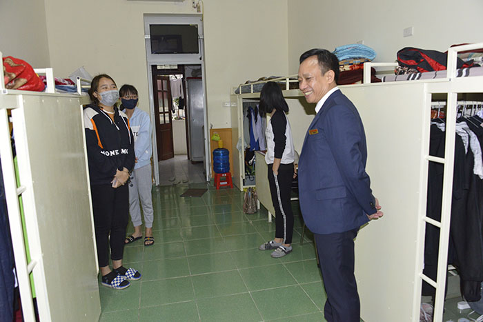 Tại buổi kiểm tra, thầy Hiệu trưởng ghi nhận và đánh giá cao sự chủ động tích cực thực hiện các biện pháp dọn dẹp vệ sinh, phun thuốc khử trùng, trang bị các thiết yếu để phòng, chống dịch nCoV tại các giảng đường, ký túc xá, nhà làm việc, khu thể thao…