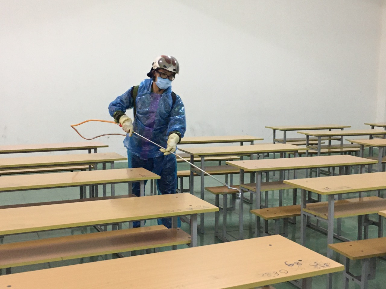 Ban Giám hiệu Nhà trường đã chỉ đạo các đơn vị trong toàn Trường cùng phối hợp để phun thuốc khử trùng toàn Trường, bao gồm các phòng học, phòng mô phỏng, nhà vệ sinh, nơi phát hành sách cho sinh viên, các khu ký túc xá, căng tin, nhà ăn sinh viên, khu luyện tập thể thao, phòng làm việc của cán bộ, giảng viên,…nhằm khử trùng, đảm bảo vệ sinh nơi học tập, làm việc.
