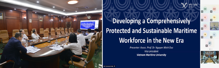 Sáng 17/4/2025, Đoàn Trường Đại học Hàng hải Việt Nam do PGS.TS. Nguyễn Minh Đức -Phó Hiệu trưởng làm đại diện đã tham dự Cuộc họp trực tuyến Nhóm công tác chuyên gia hàng hải APEC năm 2025 do đại diện Cục Hàng hải và Đường thủy Việt Nam phối hợp với Ban Thư ký APEC chủ trì tổ chức.