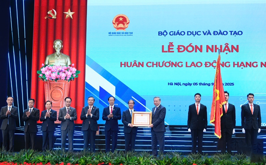 Bộ Giáo dục và Đào tạo vinh dự và tự hào được Tổng Bí thư Tô Lâm trao tặng Huân chương Lao động hạng Nhất nhân Kỷ niệm 80 năm truyền thống ngành Giáo dục