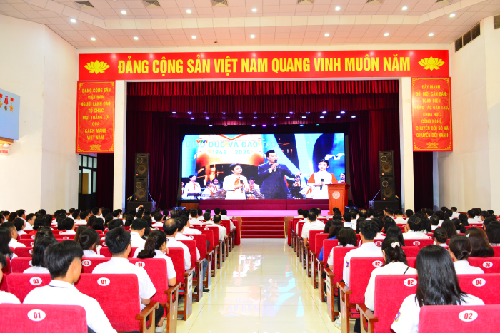 Toàn cảnh điểm cầu trực tiếp Lễ kỷ niệm 80 năm truyền thống ngành Giáo dục và Khai giảng năm học 2025-2026 tại Trường Đại học Hàng hải Việt Nam