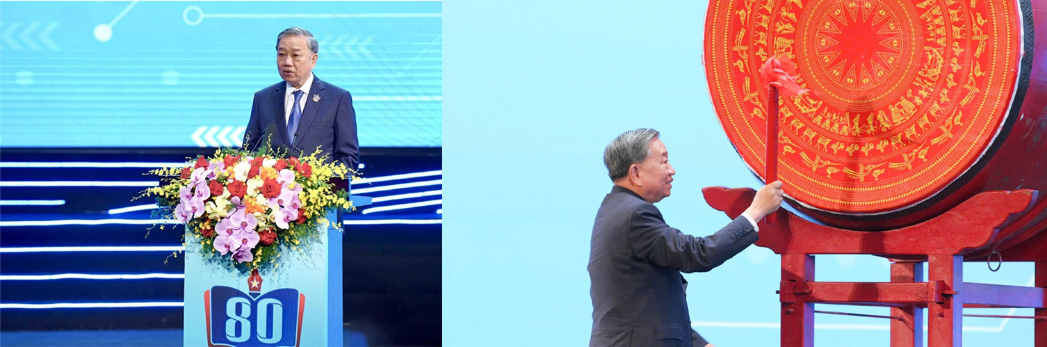 Tổng Bí thư Tô Lâm phát biểu chúc mừng, chỉ đạo, giao nhiệm vụ và đánh trống khai giảng năm học mới 2025-2026