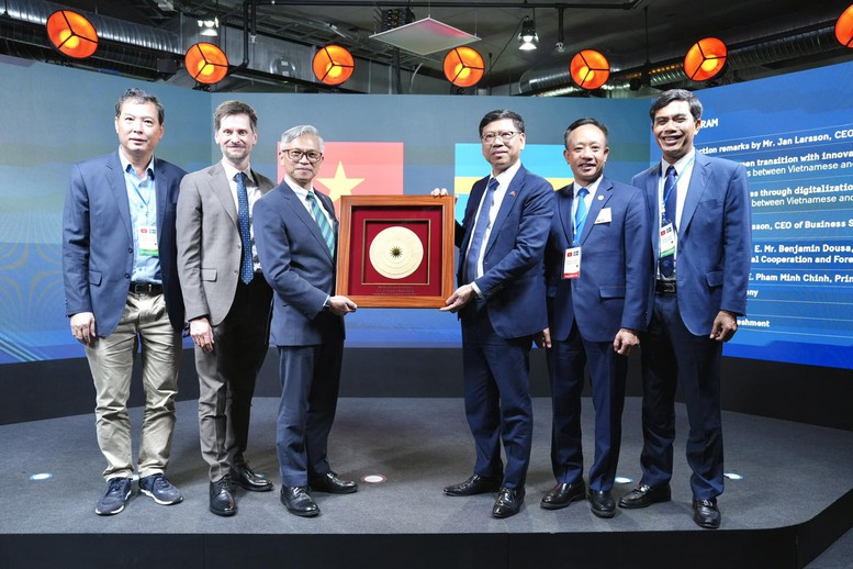 Trường Đại học Hàng hải Việt Nam và Đại học Hàng hải Thế giới trao văn kiện hợp tác dưới sự chứng kiến của Thủ tướng Phạm Minh Chính và Bộ trưởng Bộ Hợp tác quốc tế và Ngoại thương Thụy Điển
