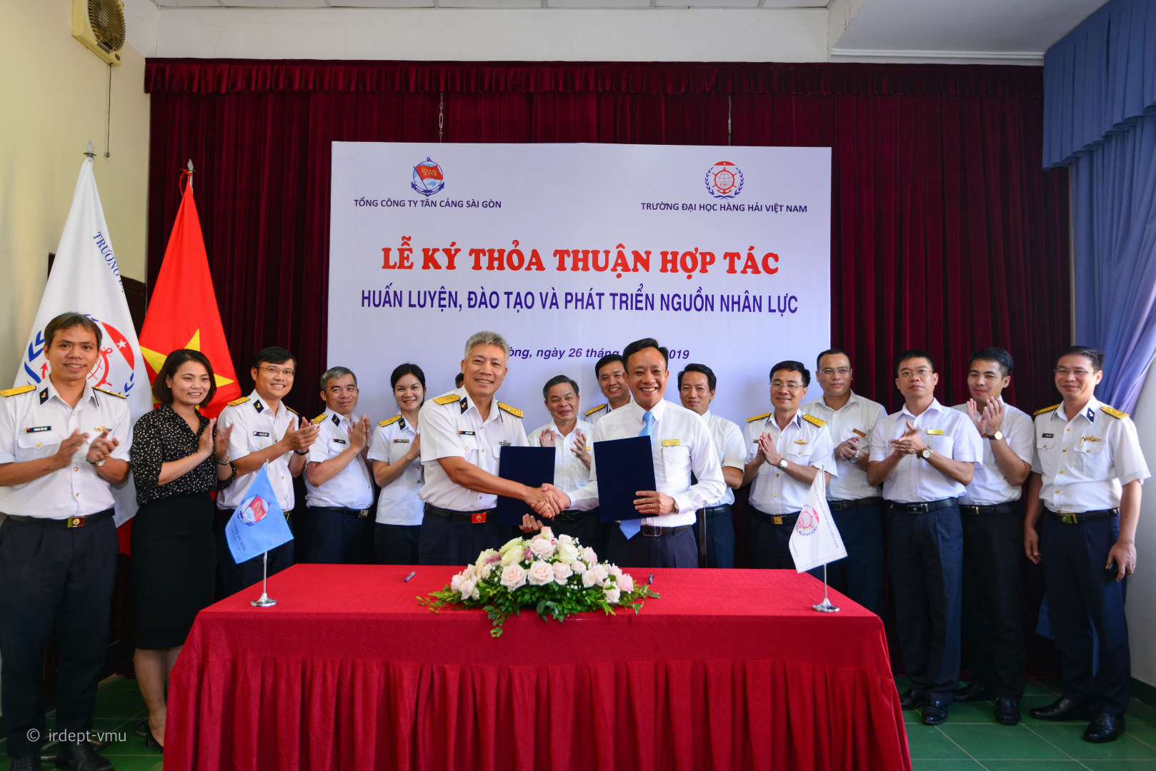 Nhằm góp phần thực hiện thành công Nghị quyết Hội nghị lần thứ 8 Ban chấp hành Trung ương khóa XII về Chiến lược phát triển bền vững kinh tế biển Việt Nam đến năm 2030, tầm nhìn đến năm 2045 và Nghị quyết 45 của Bộ Chính trị về phát triển thành phố Hải Phòng, đồng thời sử dụng hiệu quả hơn nữa nguồn lực và thế mạnh sẵn có cùng hướng tới giải quyết vấn đề thực tiễn trong lĩnh vực giáo dục và đào tạo chất lượng cao, Trường Đại học Hàng hải Việt Nam và Công ty TNHH MTV Tổng Công ty Tân Cảng Sài gòn đã kỹ kết thỏa thuận hợp tác toàn diện về huấn luyện, đào tạo và phát triển nguồn nhân lực đặc biệt trong lĩnh vực Khai thác Cảng, Logistics và Dịch vụ biển. Tham gia lễ ký thỏa thuận hợp tác có đại diện Trường Đại học Hàng hải Việt Nam: PGS. TS. Phạm Xuân Dương- Hiệu trưởng và Đại diện Công ty TNHH MTV Tổng Công ty Tân Cảng Sài Gòn: Đại tá Bùi Sỹ Tuấn, Phó Tổng Giám đốc, Tổng Công ty Tân Cảng Sài Gòn.